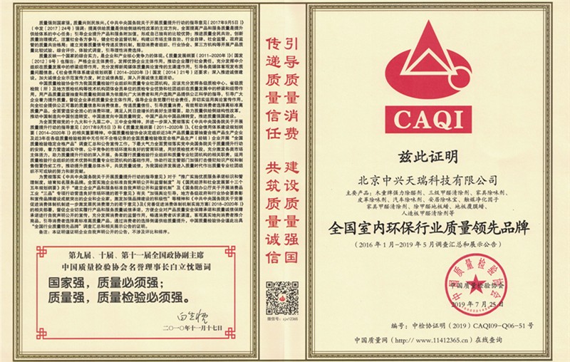 2019年獲全國室內環保行業質量品牌
